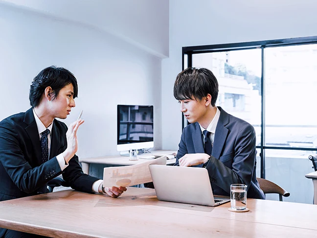 年に1回ずつ、営業部およびエンジニア各リーダーと、それぞれ定期面談を実施。「スキル・資格・客先評価」などを基準に目標を設定して、多角的に支援していきます。